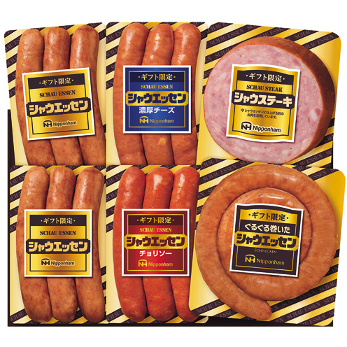 ギフト限定)シャウエッセン100g×2、ギフト限定)シャウエッセン濃厚チーズ100g、ギフト限定)シャウエッセンチョリソー100g、ギフト限定)ぐるぐる巻いたシャウエッセン122g、ギフト限定)シャウステーキ122g
