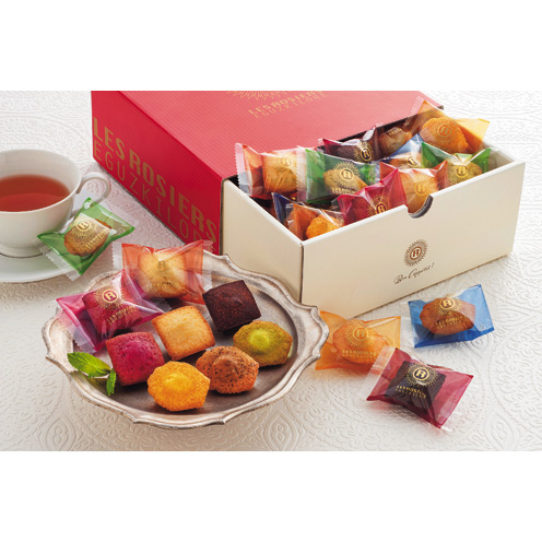 フィナンシェ(プレーン・ショコラ・フランボワーズ)×各7、マドレーヌ(ピスタチオ・アールグレイ・マンゴー)×各7(計42)