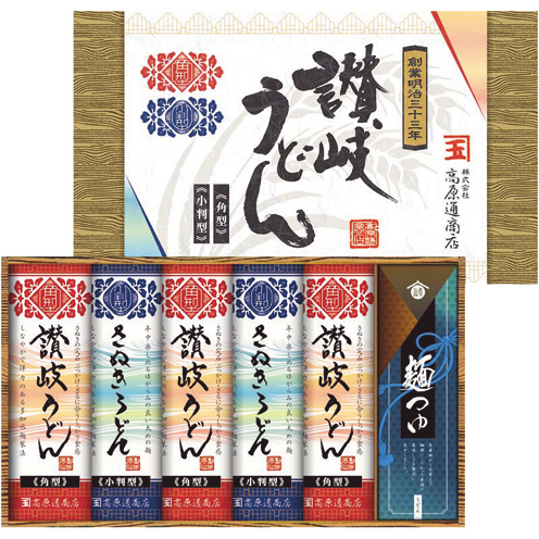 讃岐うどん(角型×3・小判型×2)各240g、うどんつゆ(濃縮)12ml×10袋