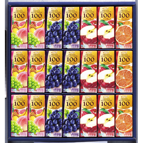 アップル100%・グレープ100%・フルーツセブン100% 200ml×各6、オレンジ100% 200ml×3