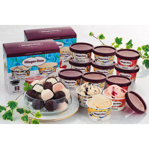 ハーゲンダッツラバーズアソート(バニラ・クッキー&クリーム・ストロベリー各70ml×各2)×2、ショコラアイスボール(バニラ・クランチ・ストロベリー各12ml)×各6(計18)