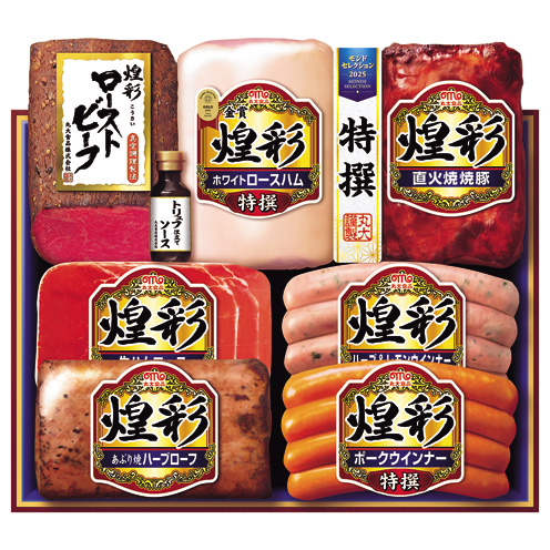 ローストビーフ(モモ)180g・特撰ホワイトロースハム350g・直火焼焼豚170g・あぶり焼ハーブローフ170g・特撰ポークウインナー(プレーン)80g・生ハムロース36g・特撰ハーブ&レモンウインナー80g・トリュフ仕立てソース90ml