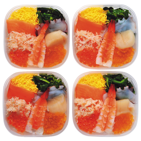 (帆立、えび、ずわい蟹、サーモン、いくら醤油漬、たこ、とびっこ、菜の花、錦糸玉子)60g×4