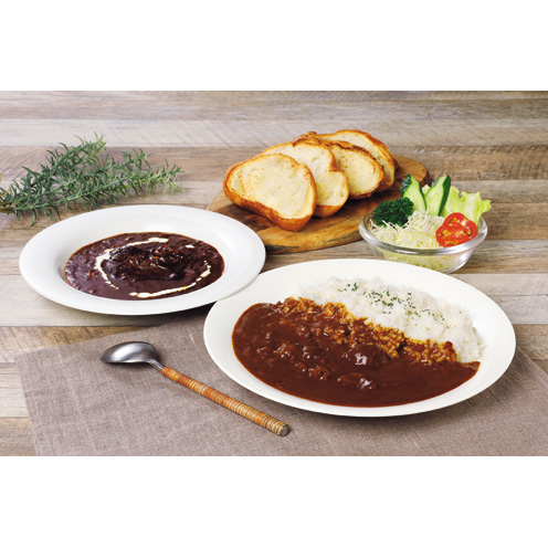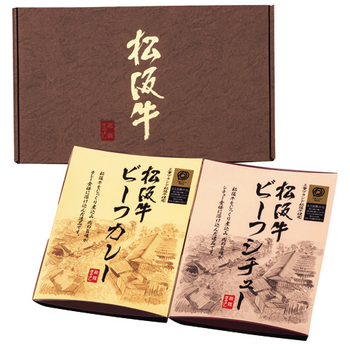 松阪牛をじっくり煮込み、肉の旨味が際立つビーフカレーと濃厚な松阪牛ブイヨンに赤ワインとブラウンルウをブレンドした芳醇な香りの松阪牛ビーフシチューのギフトセットです。