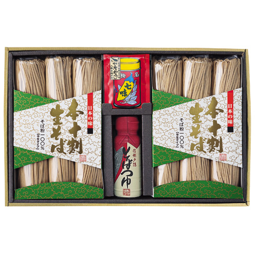 本十割生そば(半生)110g×6、そばつゆ100ml×1、八幡屋七味唐辛子8g×1