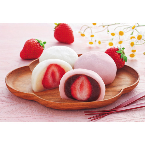 送料無料 冷凍博多あまおうを、まるごと1粒使用した紅白2種類の苺大福。