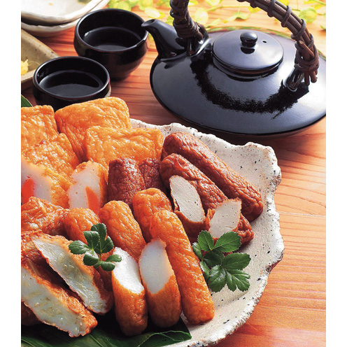 特揚げ棒天4本、いわし棒天4本、のり巻棒天1本、しそ巻棒天1本、にんじん天5枚、ごぼう天5枚、五目揚げ2枚、梅おはら揚げ(黄)2個