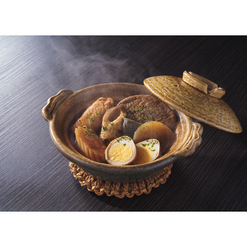 送料無料焼津ならではの黒はんぺん入りのおでんです。だし粉をかけて食べるのが焼津流です。